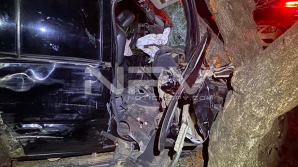 Las autoridades fueron alertadas poco después de las 22:00 horas de este domingo, en el sentido de que había un choque con prensados adelantito de la presa en mención, por lo que rápidamente acudieron varias unidades de Seguridad Pública Municipal, oficiales de vialidad y los cuerpos de auxilio, encontrando al llegar una camioneta marca Rodeo Isuzu, en color negro, con placas del Estado de Sonora, totalmente destrozada, luego de que se había estrellado contra un árbol de Guásima.