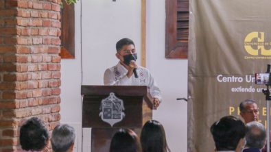 También estuvo presente el rector del Centro Universitario de la Costa de la Universidad de Guadalajara, Jorge Téllez López, y además en un momento bastante emotivo, el periodista y caricaturista Ricardo Saucedo, conocido como ‘Vallartín’, regaló un trabajo de su creación al profesor Gómez Encarnación.