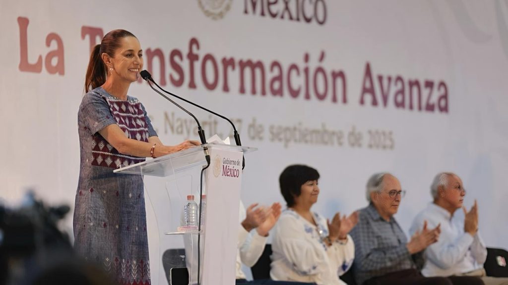 La mandataria informó que 374 mil 970 personas en Nayarit son beneficiarias directas de los programas de bienestar, con una inversión federal de 9 mil 847 millones de pesos en 2025. “Es dinero directo a las familias, a quienes más lo necesitan”, dijo.