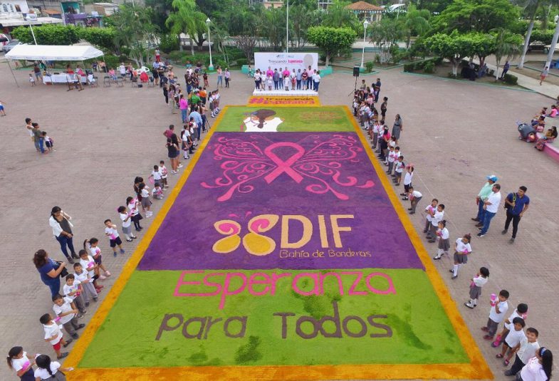 Cabe señalar, que previo al arranque de dicho programa, alumnos de la primaria Nicolas Bravo de El Porvenir; de la Telesecundaria; COBAEN; así como los Chicos Malos de San Juan y personal del Sistema DIF, trabajaron en la realización de un tapete conmemorativo, en honor a todos aquellos guerreros que día a día luchan contra el cáncer de cualquier tipo, manteniendo la esperanza de su recuperación.
