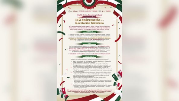 Luego de dos años de suspensión por las condiciones sanitarias imperantes a nivel mundial, a causa de la pandemia, el Ayuntamiento de Puerto Vallarta ya realiza los preparativos y lanzó la convocatoria a las escuelas públicas y privadas, a asociaciones civiles y culturales del municipio, para que participen en el desfile cívico, deportivo y cultural en conmemoración al aniversario 112 de la Revolución Mexicana, que se llevará a cabo el próximo 20 de noviembre de 2022.
