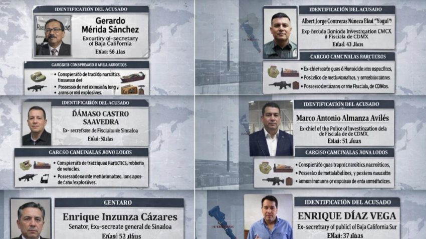 En un hecho sin precedentes para la política mexicana, un tribunal federal de Manhattan, Nueva York, desclasificó este miércoles una acusación formal contra diez figuras de alto nivel del estado de Sinaloa. Según las autoridades estadounidenses, estos individuos desempeñaron un papel esencial en la logística criminal del Cártel de Sinaloa, utilizando sus posiciones en el gobierno y las fuerzas del orden para facilitar el traslado masivo de metanfetamina, heroína y fentanilo a través de la frontera.