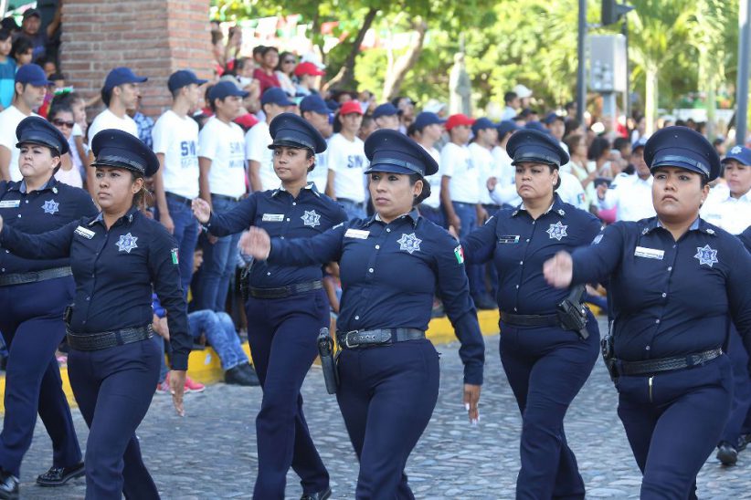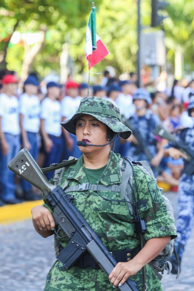 Poco después de las 10 de la mañana, comenzó a avanzar la columna del desfile con las banderas y estandartes de las instituciones participantes al frente, seguidas por las escoltas. El paso del contingente fue vistoso y llenó de emoción a los vallartenses y visitantes que se dieron cita en el centro de la ciudad, el cual contó con la participación de un total de mil 413 personas, entre ellos 415 elementos del Ejército, Fuerza Aérea, Guardia Nacional y Marina Armada de México; 158 de la Dirección de Seguridad Ciudadana y la Subdirección de Protección Civil y Bomberos Municipal.