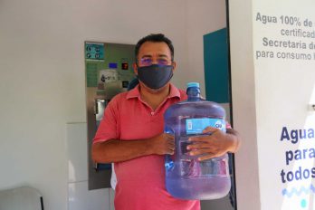 Enfatizó en la importancia de llevar el garrafón totalmente limpio y desinfectado, acudir con cubrebocas, guardar la sana distancia y utilizar el gel antibacterial, para cuidar la salud de los trabajadores de los Aguamáticos, así como de los beneficiarios y sus familias.