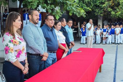 Durante el acto de cierre del presente ciclo escolar, el alcalde recordó que se trata de una solicitud realizada por el plantel a su administración, a través del director de Desarrollo Social, Víctor Bernal Vargas, a la cual se da respuesta. “Nos pusimos a sacar cuentas y este año le vamos aponer techo precisamente a este patio cívico, a esta cancha; la vamos a techar, le vamos a poner domo para que puedan hacer ejercicio, para que puedan jugar, para que puedan disfrutar y puedan tener eventos, y ya el sol no les esté lastimando a todos ustedes”.