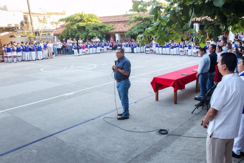 Excelentes noticias llevó el presidente municipal, Arturo Dávalos Peña, a la escuela primaria 20 de Noviembre de esta ciudad, al anunciar que en breve se estará llevando a cabo el techado de su patio cívico, para proteger a los alumnos y maestros durante el desarrollo de sus actividades deportivas, recreativas y académicas, con lo que su gobierno refrenda una vez más el compromiso que mantiene con la educación de los vallartenses.