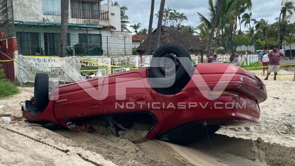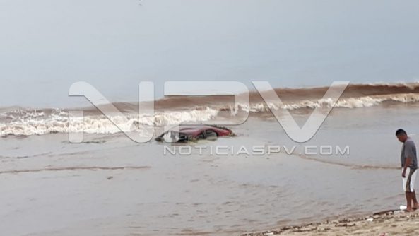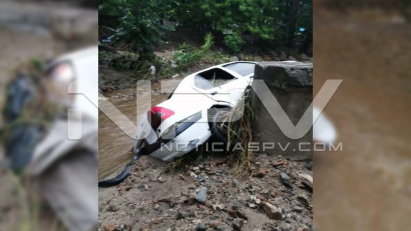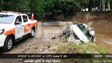 Vehículo arrastrado por la corriente en Arroyo El Indio, en Bucerías. El auto estaba estacionado y se lo lleva la corriente. Al parecer es el mismo vehículo localizado en playa de Bucerias frente a la desembocadura del Arroyo del Indio.