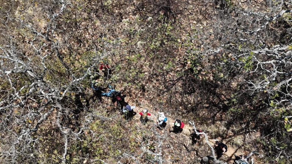 Para agilizar la localización del afectado, los rescatistas realizaron un reconocimiento aéreo mediante el uso de un dron, herramienta que permitió ubicar con mayor precisión el punto donde se encontraba el hombre, identificado como un masculino de aproximadamente 70 años de edad.