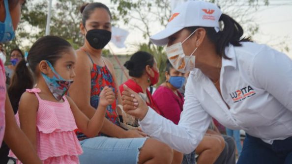 “Nosotros le vamos a apostar mucho al desarrollo de nuestros niños, de nuestros jóvenes, de nuestras mujeres; vamos a trabajar en lo deportivo, que ustedes ya ven cómo le hemos invertido en las áreas deportivas, que le vamos a invertir a lo cultural; vamos a tener maestros, talleres; vamos a invertirle a la educación por supuesto; vamos a mantener programas que de verdad han venido a ayudarle a la gente”, refrendó la candidata del movimiento naranja.