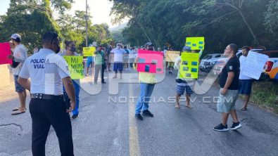 Un grupo de pobladores y ambientalistas cerraron hoy el paso vehicular en la carretera 200 hacia la comunidad de Mismaloya, debido a la construcción de un espigón en la playa, frente a los arcos, concretamente en Villas Paraíso.