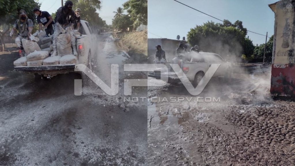Comunicado.- El Gobierno del Estado a través de la SSPC y autoridades de salud, con la finalidad de prevenir y evitar el brote de posibles bacterias y enfermedades, se realiza la expansión de cal por vialidades de los municipios con afectaciones por inundaciones.