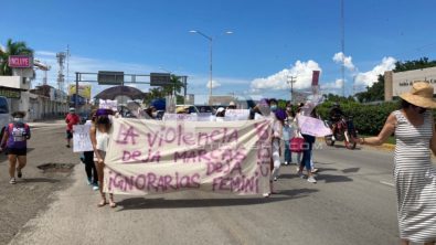 Al grito de “Ni una más, ni una más”, “No más feminicidios en Nayarit, ni Jalisco” mujeres marcharon por la carretera federal 200 hasta la Fiscalía General del estado de Nayarit en Bahía de Banderas para exigir que se frene la violencia contra las mujeres y se hagan las investigaciones correspondientes en el caso de los feminicidios de Amelia ”N” y Verónica ”N”, de 11 y 14 años.