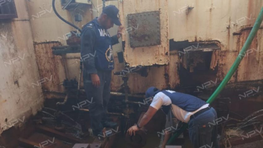 A la llegada de la ayuda presentaba ingreso de agua en el cuarto de máquinas y en la bodega, con un aproximado del 45 por ciento de hundimiento