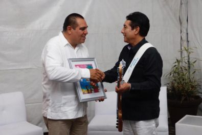 Previo a su salida al escenario, al filo de las 22:00 horas, donde ya los esperaban cerca de 20 mil personas, el alcalde Arturo Dávalos Peña, entregó a integrantes de la agrupación, un presente de Puerto Vallarta, como agradecimiento por haber aceptado presentarse en este aniversario del municipio.