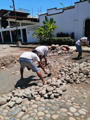 SEAPAL Vallarta mejora e intensifica las labores de reparación de vialidades y banquetas, así como levantamiento de escombros, actividades posteriores a la ejecución de reparaciones a las líneas de agua potable y drenaje.