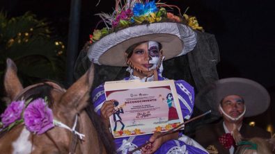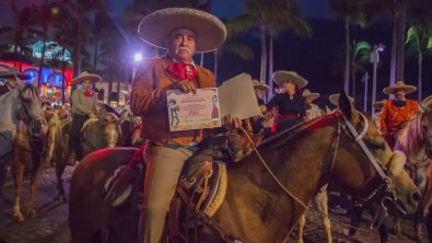 Al término del recorrido, el Profe Michel, acompañado de su esposa María de Jesús López Delgado, presidenta del Sistema DIF, así como por Ludvig Estrada Virgen, director de Turismo y Desarrollo Económico, entregó reconocimientos a los participantes frente a palacio municipal. “Me da mucho gusto que se hayan sumado a esta festividad, se trata de dos grandes tradiciones mexicanas, la de la charrería y la del Día de Muertos; en Puerto Vallarta nos engalanamos porque tenemos grandes amigos que son charros y escaramuzas, con vestimenta que tanto los distingue, ustedes son parte de nuestra cultura”.