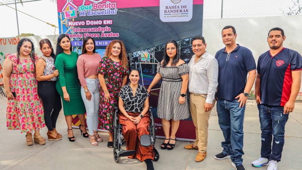 Bahía de Banderas, Nay., 13 de diciembre de 2023.- La mañana de este miércoles, la presidente municipal de Bahía de Banderas, Mirtha Villalvazo, arrancó la construcción de dos domos para centros de Educación Secundaria del municipio.