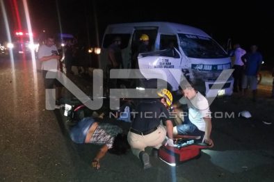 En fuerte accidente automovilístico, perdió la vida una mujer que viajaba a bordo de una motocicleta, junto con otra persona que se dio a la fuga, luego de que chocaron de frente contra un taxi colectivo de la ruta San Juan-Nuevo Vallarta, resultando además varias personas heridas, que fueron auxiliadas por los elementos de los servicios de emergencias y llevadas a recibir atención médica a un hospital.