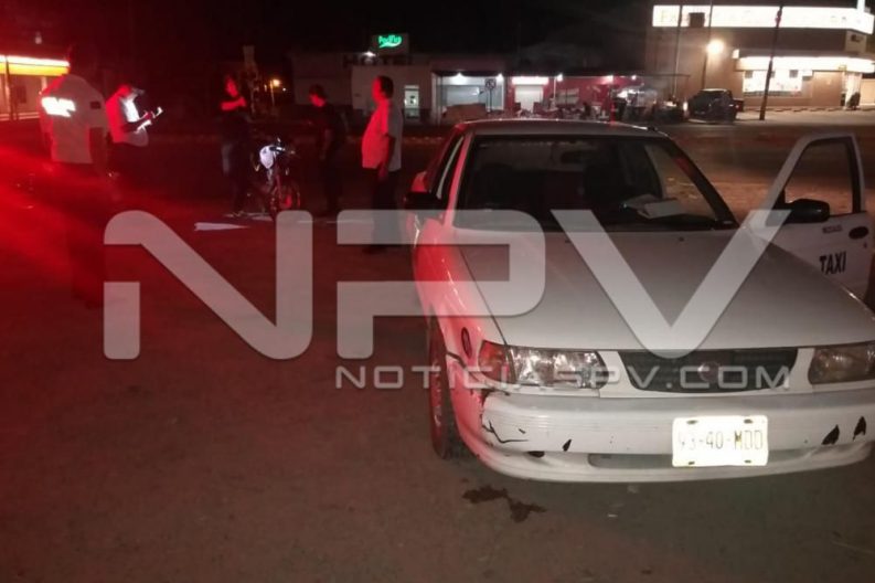 Según comentaron algunas personas que el accidente ocurrió cuando el conductor del taxi intentaba ingresar a la avenida Emilio M. González, sin tomar las debidas precauciones, atravesándosele en su camino a una motocicleta de la marca Honda, de color blanco, tipo Cargo, 150, sin placas de circulación que conducía un joven de nombre Luis Carlos, vecino de El Porvenir, Nayarit, con domicilio conocido, resultando con lesiones una mujer que acompañaba al motociclista, que fue llevada por sus propios medios a revisión médica.