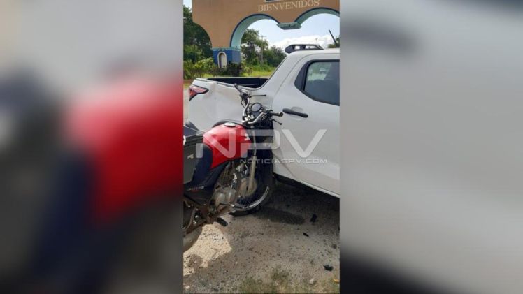 Repartidor de carne que circulaba a bordo de una motocicleta por la carretera a Valle de Banderas, resultó lesionado tras chocar contra una camioneta que le cortó la circulación antes de llegar a los arcos de ingreso.