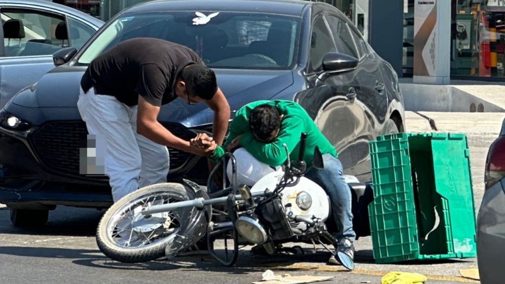 Fue entonces cuando el vehículo Mazda, de color negro y con placas del estado de Jalisco, impactó contra la motocicleta, la cual portaba rótulos verdes de la refaccionaria “Rolcar”.