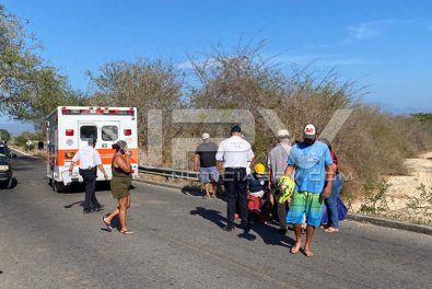 Joven motociclista resultó lesionado al derrapar y chocar contra un machuelo cuando circulaba en una moto por la carretera del camino viejo en el tramo San Juan-Valle de Banderas, mismo que fue auxiliado por los Paramédicos de Protección Civil, quienes lo llevaron a recibir atención médica al hospital de San Pancho.
