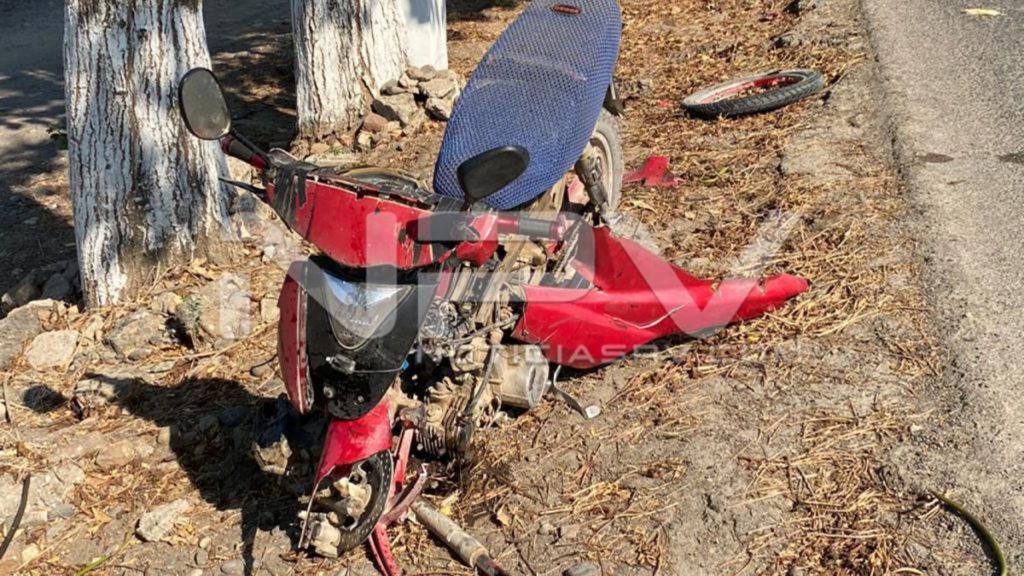 En su trayecto el motociclista rueda en el pavimento por varios metros y esto lo salvó de no ser atropellado por un camión de pasajeros que arrolló la moto y la dejó destrozada, dándose a la fuga el camionero con la unidad del transporte público, sin que hasta el momento se sepa de su paradero.