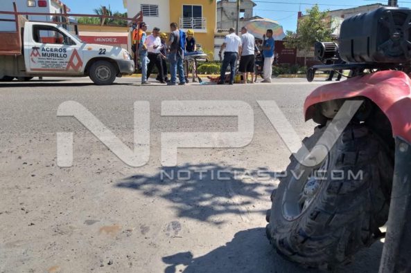 Al sitio indicado se diriguieron los elementos de Tránsito Municipal, a bordo de las unidades radiopatrullas, quienes al arribar al lugar, se percataron del accidente y luego informan a su base operativa que se trata de un choque entre una cuatrimoto de color rojo, de la marca Honda, y una camioneta Nissan, propiedad de «Aceros Murillo», donde se aprecia tirado en la carpeta asfáltica, el conductor de la moto, quien inmediatamente es resguardado para que no sea atropellado por otro vehículo, pues estaba en medio de los dos carriles.