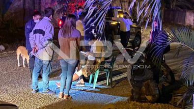 Un masculino resultó con lesiones en su cuerpo tras caer de la motocicleta que conducía, luego de que se le atravesó un perro que salió corriendo de un domicilio, al que escondieron sus amos en su casa para evadir su responsabilidad.