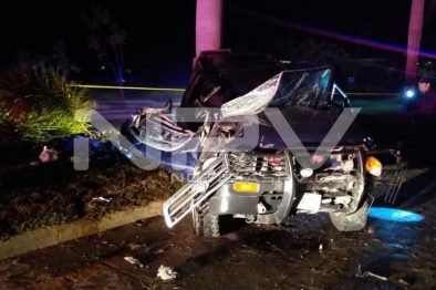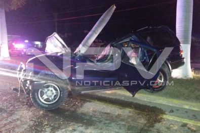 Fatal volcadura se registró sobre el Boulevard Riviera Nayarit en la zona de Flamingos en Bucerías, donde una camioneta chocó contra las palmeras quedando totalmente destrozada, resultando lesionadas tres personas y una más murió en el lugar.