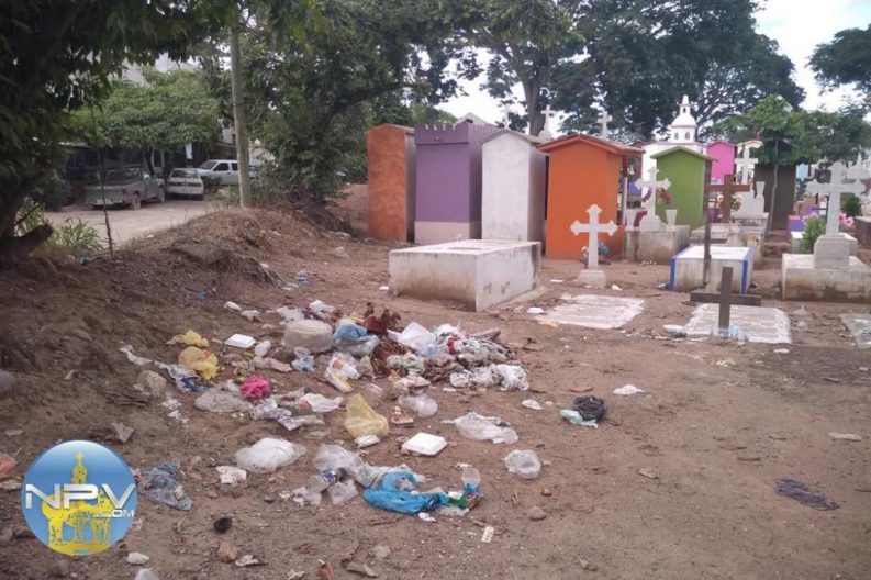 Lamentablemente así las condiciones en el panteón, lugar que es visitado por familias para visitar a sus fieles, pero no se llevan la basura.