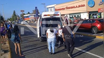 Testigos aseguran que la fémina iba distraída en su celular cruzando la avenida de ingreso al poblado y fue arrollada por un motociclista que también resultó con lesiones