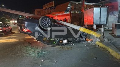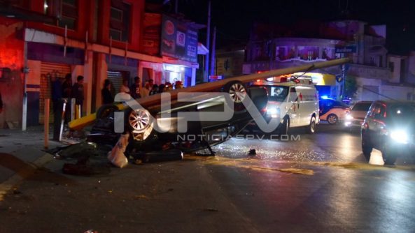 Se presume que el vehículo con placas del Estado de México que impacto la vivienda transitara a alta velocidad, mismo que perdió el control e impacto al otro vehículo, provocando que la conductora perdiera el control de la unidad generando se volcara y detuviera su marcha contra el poste.
