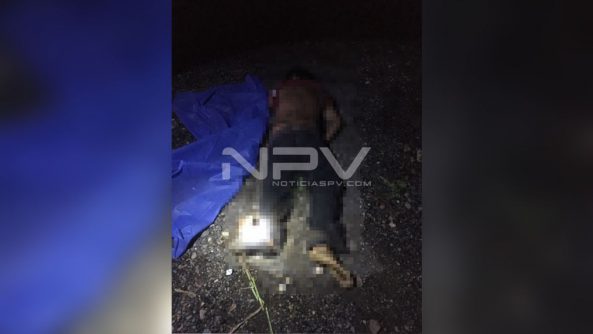 En el lugar también estaba a escasos cuatro metros, un vehículo Chevrolet, Camaro, de color negro con placas del Estado de Nayarit, en sentido de Zacualpan, hacia el poblado de Las Varas, con la puerta del conductor abierta y la parte frontal derecha con huellas de accidente y a 70 metros aproximadamente se encuentra tirada una persona del sexo masculino que estaba tapado con una manta azul, mismo que viste una playera roja, pantalón de mezclilla en color negro y descalzo que esta boca abajo a un costado de la carretera.