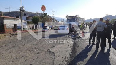 Las autoridades policíacas ahí presentes informaron que se trata de un choque de frente entre dos vehículos, un taxi blanco y amarillo, de la marca Nissan, tipo Tiida, con placas 57-79-GMK, del estado de Jalisco, con número económico del sitio 63, mismo que se encuentra impactado contra un camión de carga pétrea tipo volteo, este de la marca Ford, de color blanco con placas PF-06-943, del estado de Nayarit, desconociéndose el paradero del conductor, pues el mismo presuntamente se había dado a la fuga, dejando abandonado el pesado vehículo.