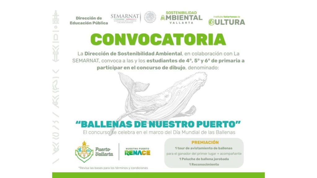 Con la finalidad de involucrar a los más pequeños en la conservación de la biodiversidad marina, el gobierno del Arquitecto Luis Munguía abrió la convocatoria artística para el concurso “Ballenas de Nuestro Puerto”. El certamen busca que los estudiantes de nivel primaria expresen, a través del arte, la estrecha relación que existe entre Puerto Vallarta y su riqueza natural.