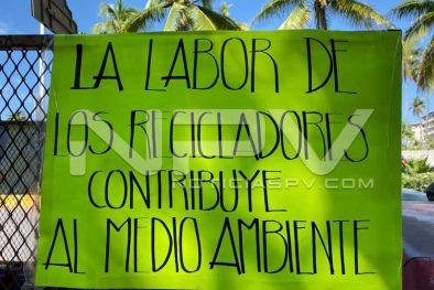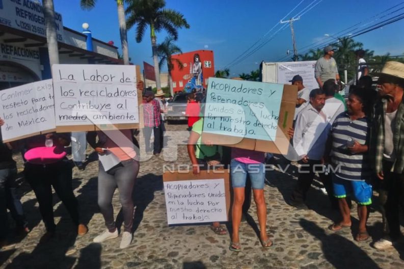 Cerca de 500 pepenadores protestaron esta mañana en Bahía de Banderas y Puerto Vallarta, como parte de un movimiento nacional, inconformes por la aplicación de la ley general para la prevención y gestión integral de los residuos, promovida por el Partido Verde Ecologista de México, PVEM, medida que afectará a 15 mil recicladores en la región.
