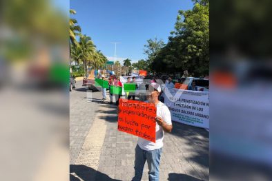 En una de las enormes mantas los manifestantes, dieron a conocer el motivo de la protesta hoy en Bahía de Banderas y Puerto Vallarta.