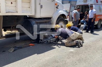 A menos de 24 horas de que se registrara un fatal accidente en el poblado de Bucerías, en donde perdió la vida un elemento de la Policía Estata, la tarde de este jueves se registró otro accidente similar en donde se vio involucrado un camión tipo volteo, mismo que atropelló, arrastró y aplastó a otra motocicleta, pero en esta ocasión afortunadamente su conductora resultó con lesiones leves.