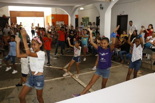 Para finalizar con el curso de verano de DPI, los niños dieron muestra de lo aprendido en sus clases de baile y canto; además, recibieron por parte de las autoridades municipales, un bolo de dulces e hicieron recorrido para observar los trabajos realizados en las clases de pintura y manualidades.