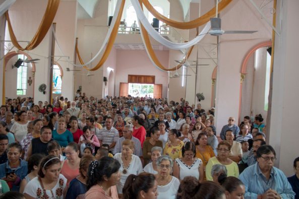 Alrededor de más de 200 peregrinos, entre hombres, mujeres y niños, arribaron a la iglesia de la Reina de Bahía de Banderas acompañando a los varones que cargan la imagen de la Virgen en sus hombros hasta llegar a la plaza publica de la comunidad donde tras un grupo de danzantes entran a la iglesia para saludar y festejar a Nuestra Señora del Rosario del Tintoque en este Día de la Candelaria.