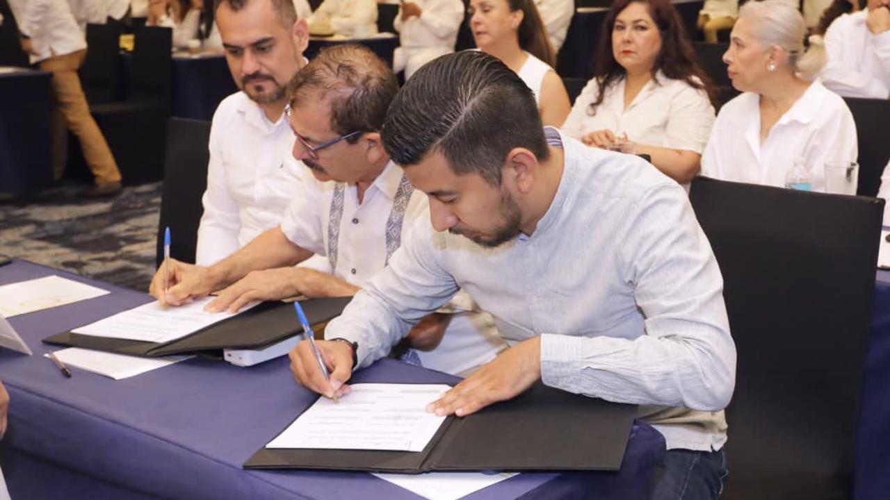 El convenio fue firmado también por el síndico municipal Francisco Sánchez, el secretario general del Ayuntamiento José Juan Velázquez Hernández y el director Jurídico Giovanni Saracco.