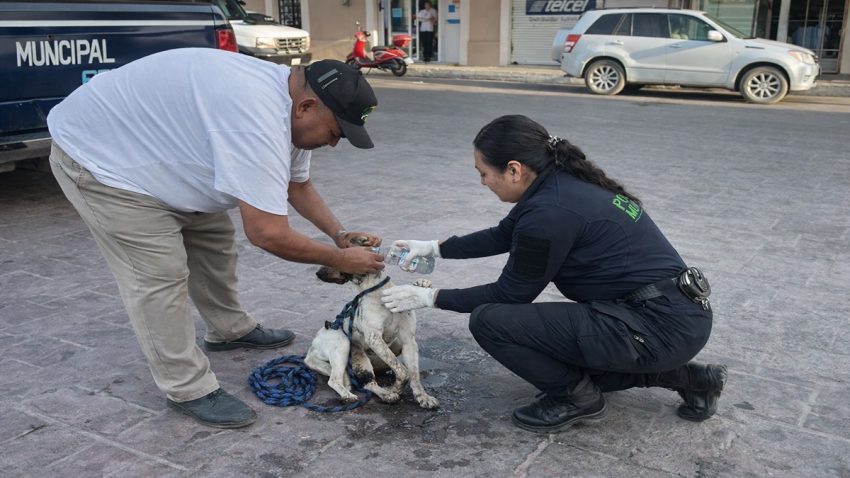 La oportuna intervención de la elemento Lenis Gómez, integrante de la Patrulla Verde de la Dirección de Seguridad Ciudadana y Tránsito Municipal, permitió salvar la vida de una perrita que había sido presuntamente envenenada en las inmediaciones de la plaza pública de Valle de Banderas.