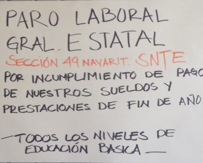 Desde inicio de esta semana trabajadores del sector salud se apostaron frente al palacio de gobierno de Nayarit derivado de la falta de pago de sus prestaciones de fin de año, así como de pagos incompletos y fuera de tiempo de sus quincenas, pero a estos trabajadores se sumaron también los del sector educativo pertenecientes a la sección 49 del SNTE por falta de pago de las prestaciones también de fin de año.