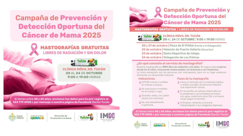 La prevención es fundamental para detectar y tratar a tiempo enfermedades como el cáncer de mama. Por ello, el Gobierno de Luis Munguía, a través de la Dirección de Promoción de la Salud, llevará a cabo la 1er Campaña Municipal de Mastografías 2025 del 20 al 24 de octubre.