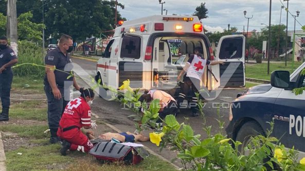 Brutal golpiza propinaron a agresivo sujeto, luego de que este intentó golpear a una joven con 6 meses de embarazo y a otras personas, el cual fue auxiliado por Socorristas de la Cruz Roja, quienes lo llevaron a recibir atención médica a un hospital.