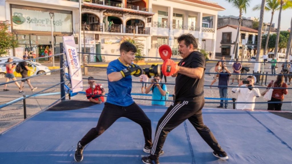 El Malecón de Puerto Vallarta se convirtió este martes en escenario de boxeo de altos vuelos cuando los protagonistas de la función “Gala de Campeones”, a celebrarse el próximo viernes en el Centro Internacional de Convenciones, realizaron un entrenamiento público y posteriormente firmaron autógrafos y se tomaron fotos con aficionados vallartenses y turistas.