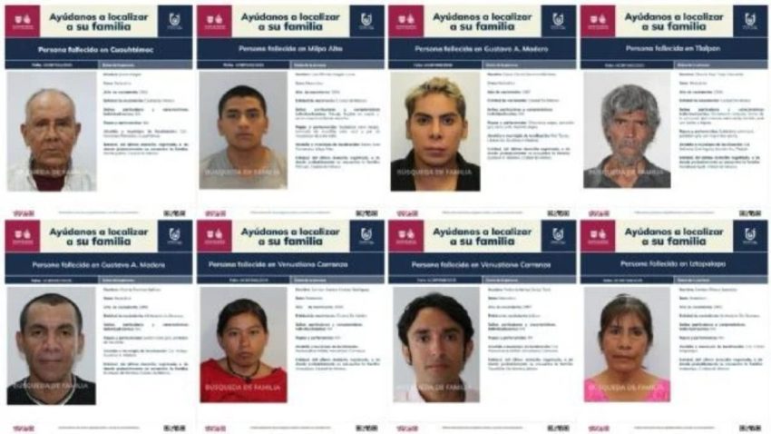 Como resultado de esta difusión, familiares han logrado identificar a doce personas y “se localizaron nueve familias, las cuales ya fueron notificadas y serán acompañadas al Instituto de Ciencias Forenses de la CDMX (INCIFO) para formalizar el proceso de entrega digna”.