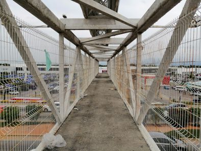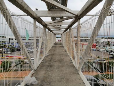 Es un problema añejo que el gobierno municipal tiene con una empresa publicitaria que mediante convenio se acordó que construiría un puente peatonal a cambio de colocar dos pantallas espectaculares para anuncios, pero solo se está beneficiando dicha empresa ya que este puente no se ha podido concluir, le falta completar el puente sobre la lateral que va de norte a sur, es decir, de Puerto Vallarta hacia Mezcales y por supuesto la otra escalera que debe aterrizar sobre banqueta o bien dentro del estacionamiento de la plaza comercial.