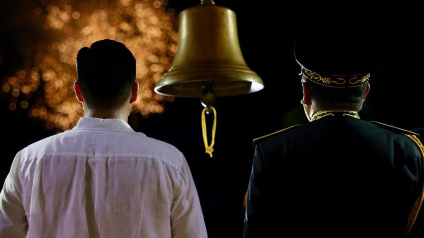 A las 11 de la noche, el presidente municipal Luis Munguía salió al balcón de la Secretaría General del Palacio Municipal, abanderado por elementos del Ejército Mexicano y acompañado por representantes de la 41 Zona Militar y la 12ª Zona Naval. Con voz emocionada, pronunció la arenga y agitó la campana, llamando a los vallartenses a recordar y celebrar la lucha por la independencia de México.